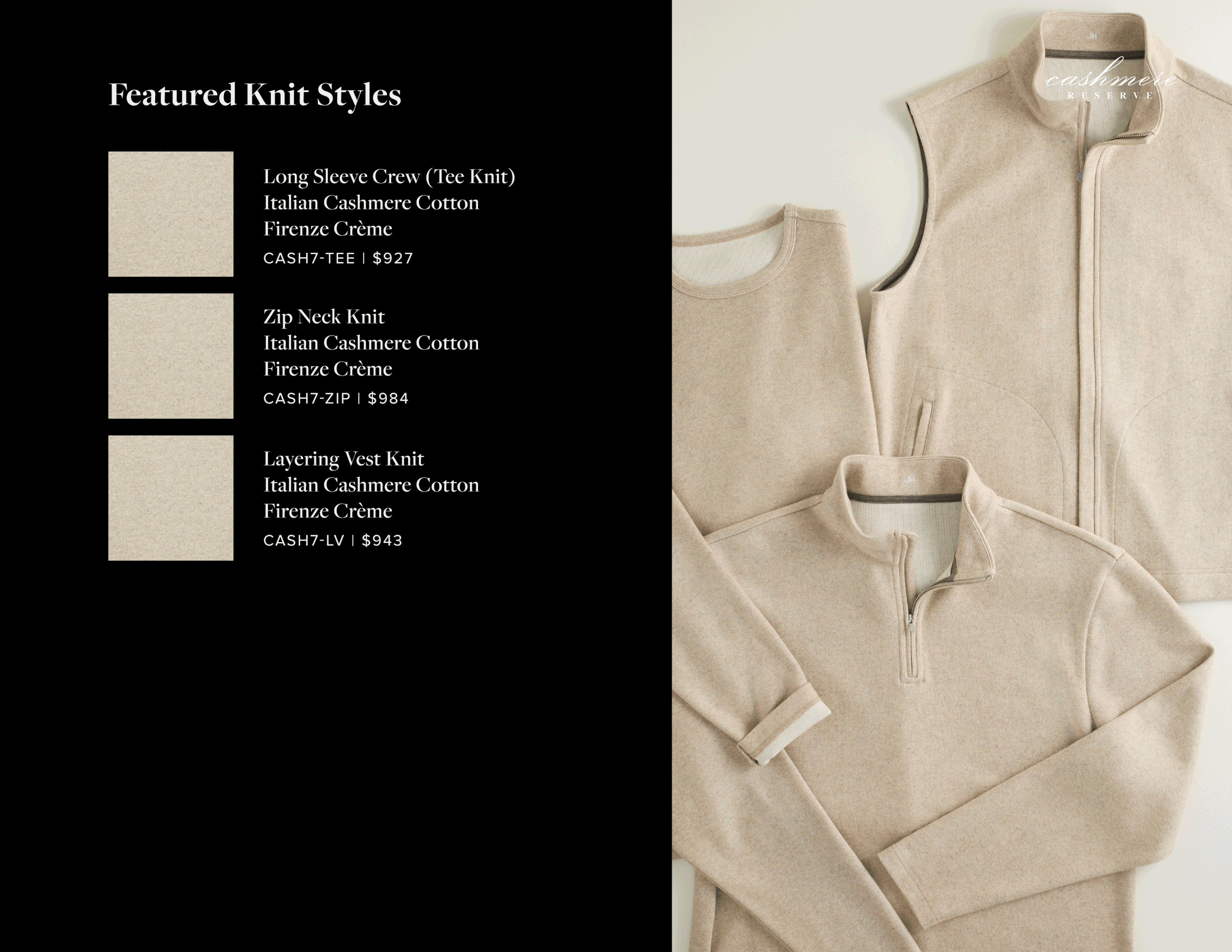 Projects for luxury custom menswear company, J.Hilburn. Developed under the direction of Brand President Simon Kneen.